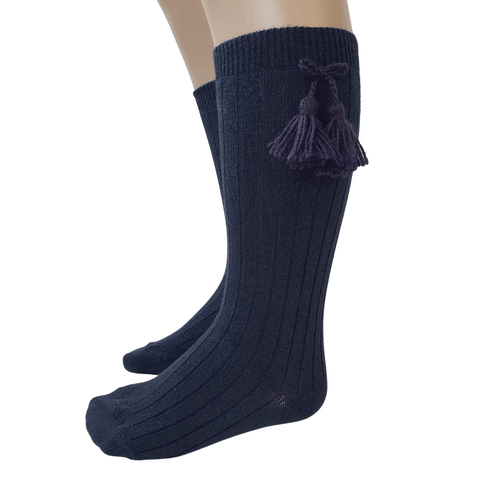 Carlomagno Ribbed Knee Navy Socks with Tassels