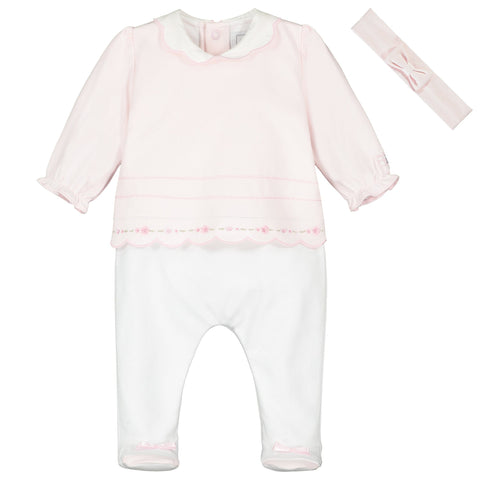 Pureté Du... Bébé Girls White Embroidered Cotton Babygrow