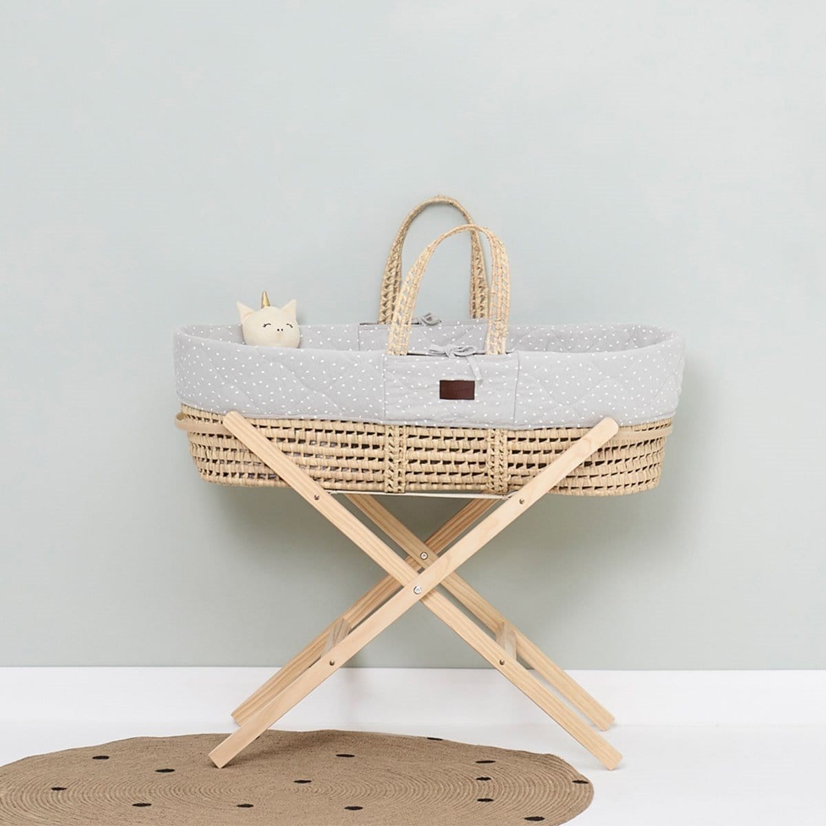 The Little Green Sheep Quilted Moses Basket, Mattress & Stand Bundle