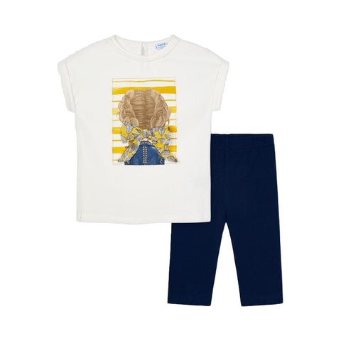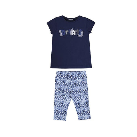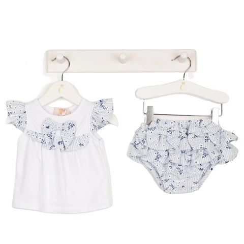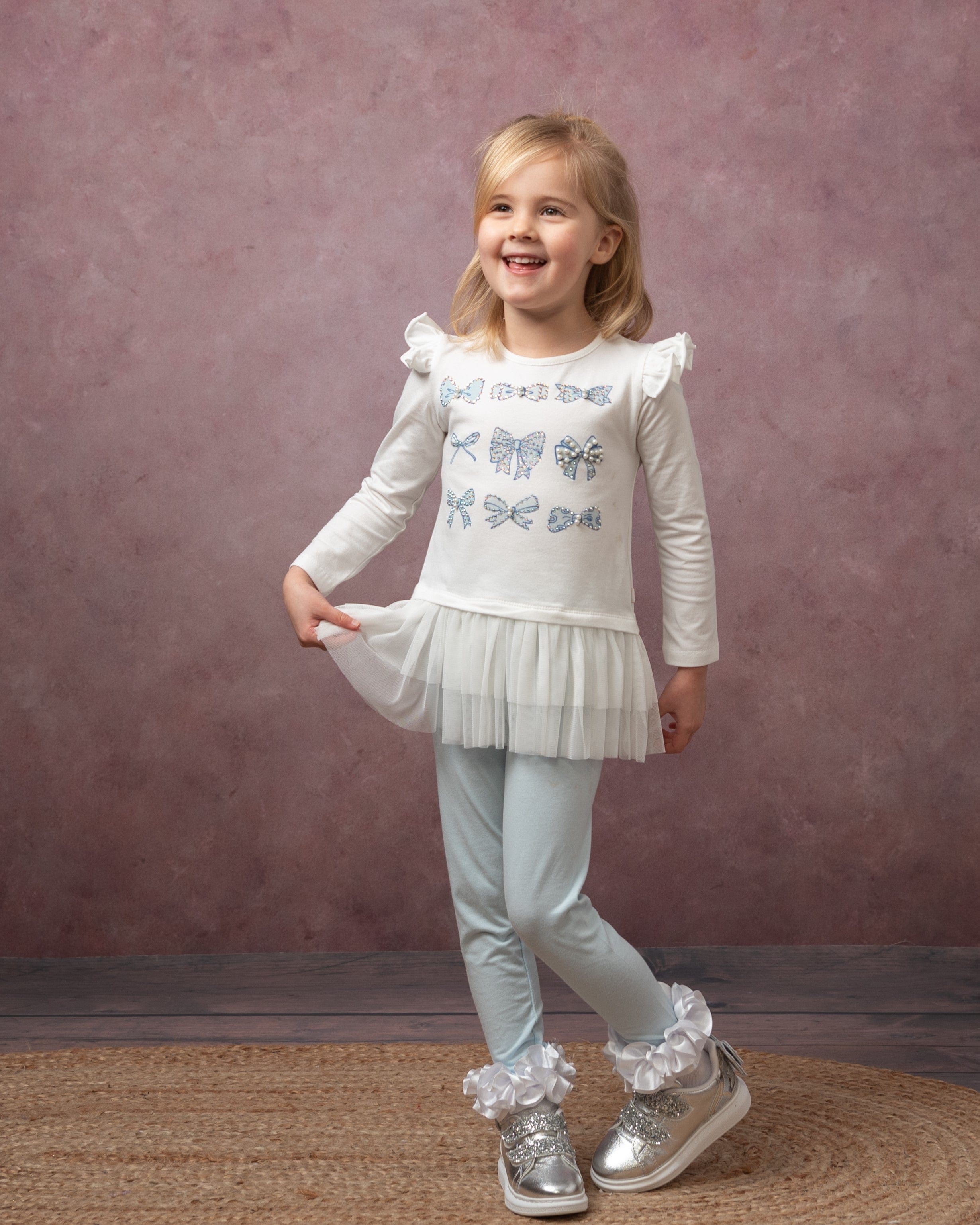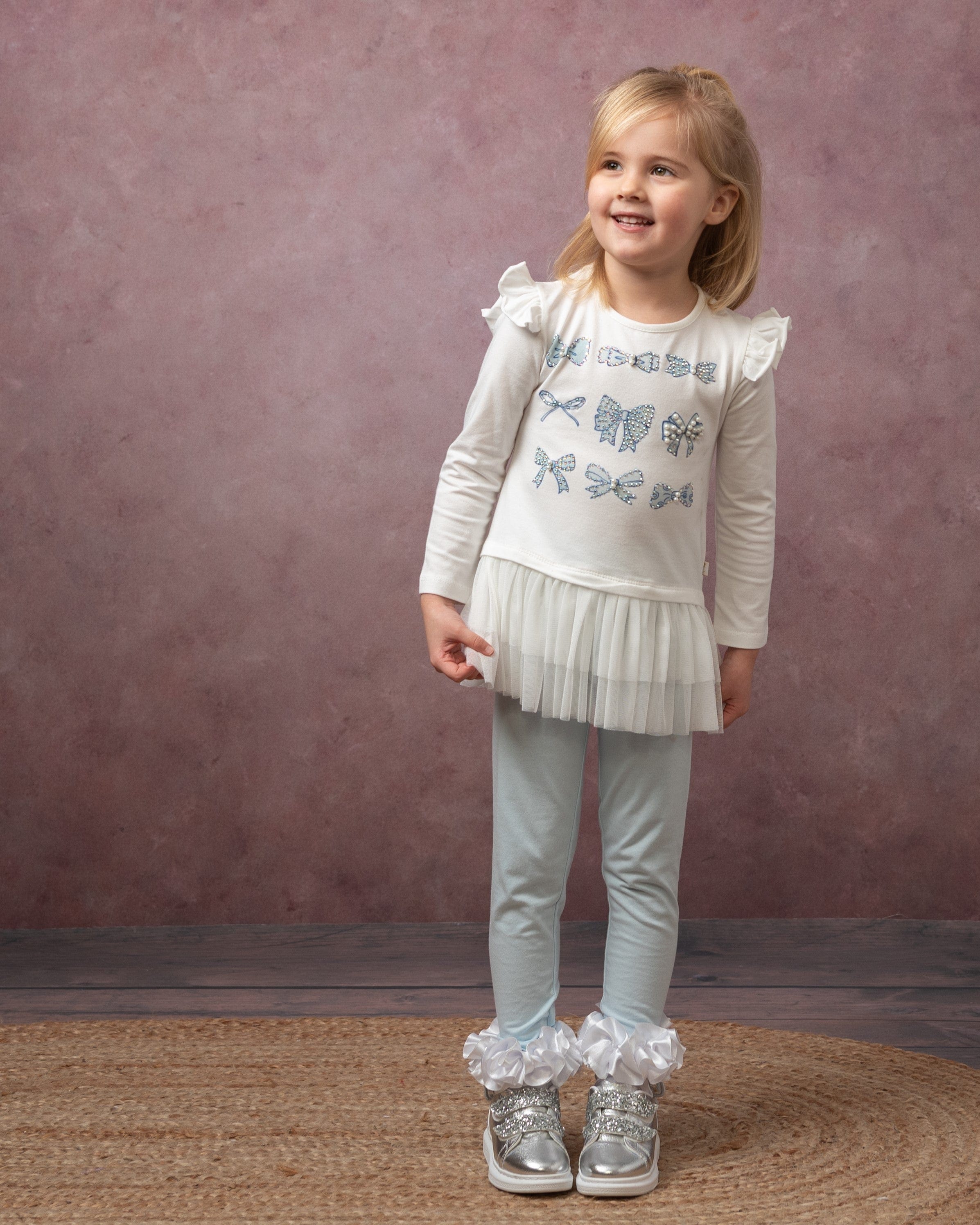 Caramelo Girls White/Blue Diamante Bow Legging Set