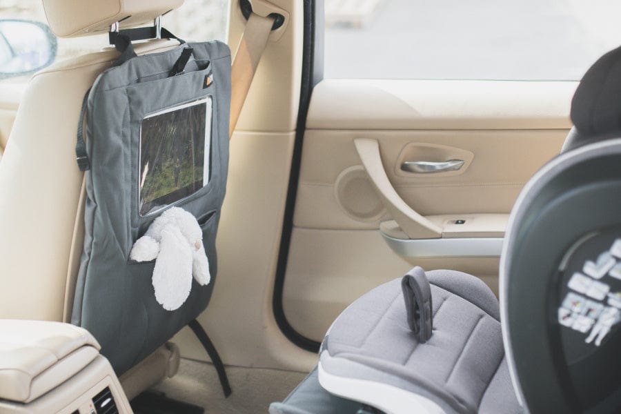 The BeSafe Tablet & Seat Cover provides a safe way to use tablets during journeys by being crash-tested in a severe test and featuring a smart Fidlock closing mechanism that keeps everything in place. It also protects the vehicle seats from dirt and indents and is easy to clean. Being able to adjust it in height makes it fit all kinds of vehicle seats. By being separable into two parts and featuring an extra fitting strap, it can even be used for forward facing seats. Two Velcro-closed pockets provide space for the small necessities. It is ISOfix compatible.