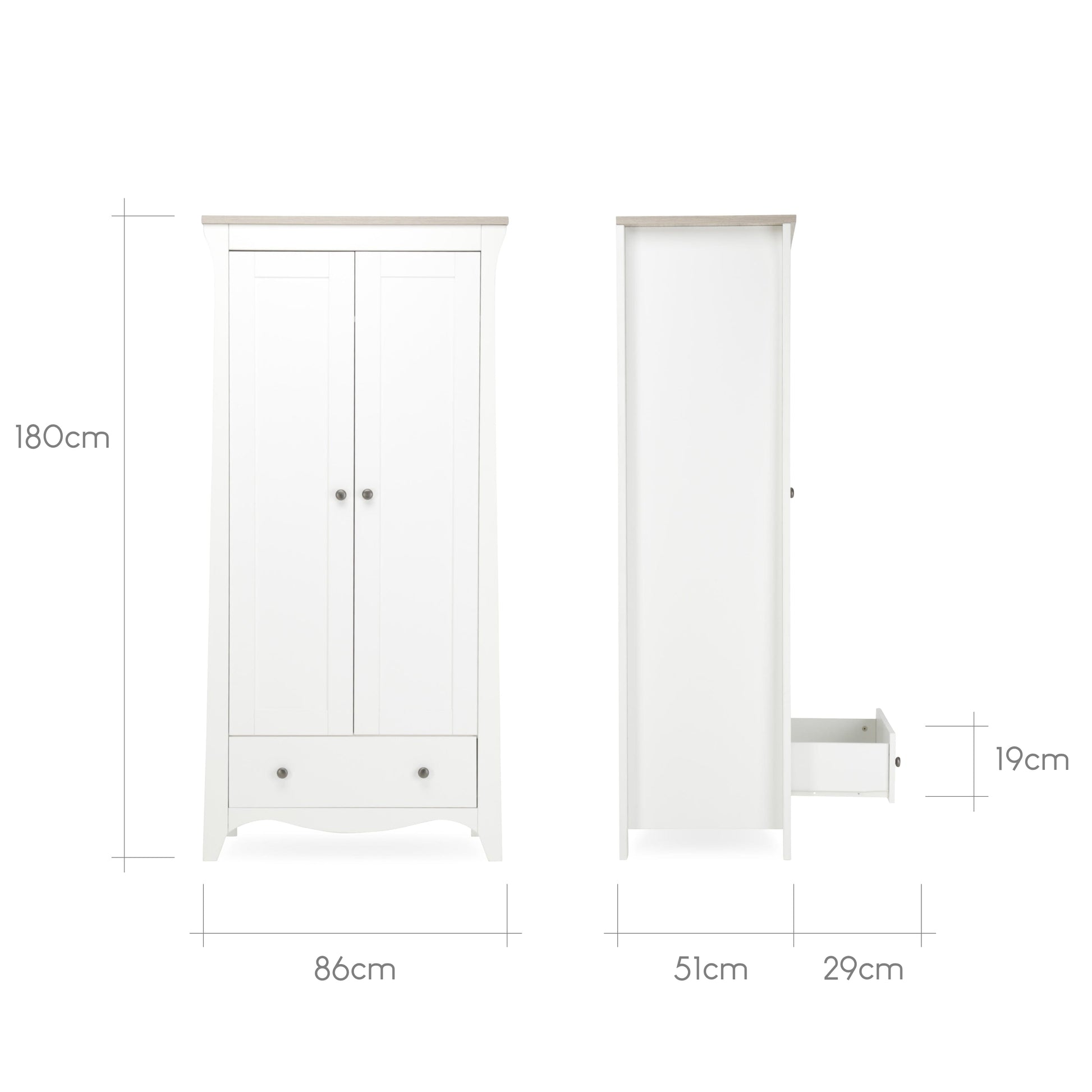 The Clara 2 Door Double Wardrobe is designed to help you successfully organise your nursery. Featuring two removable hanging rails to convert into a full-size wardrobe, a deep storage drawer and a handy shelving space, it’s classic styling will transform a modern nursery.