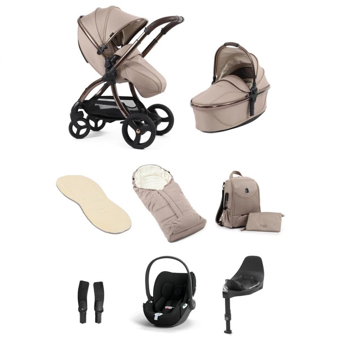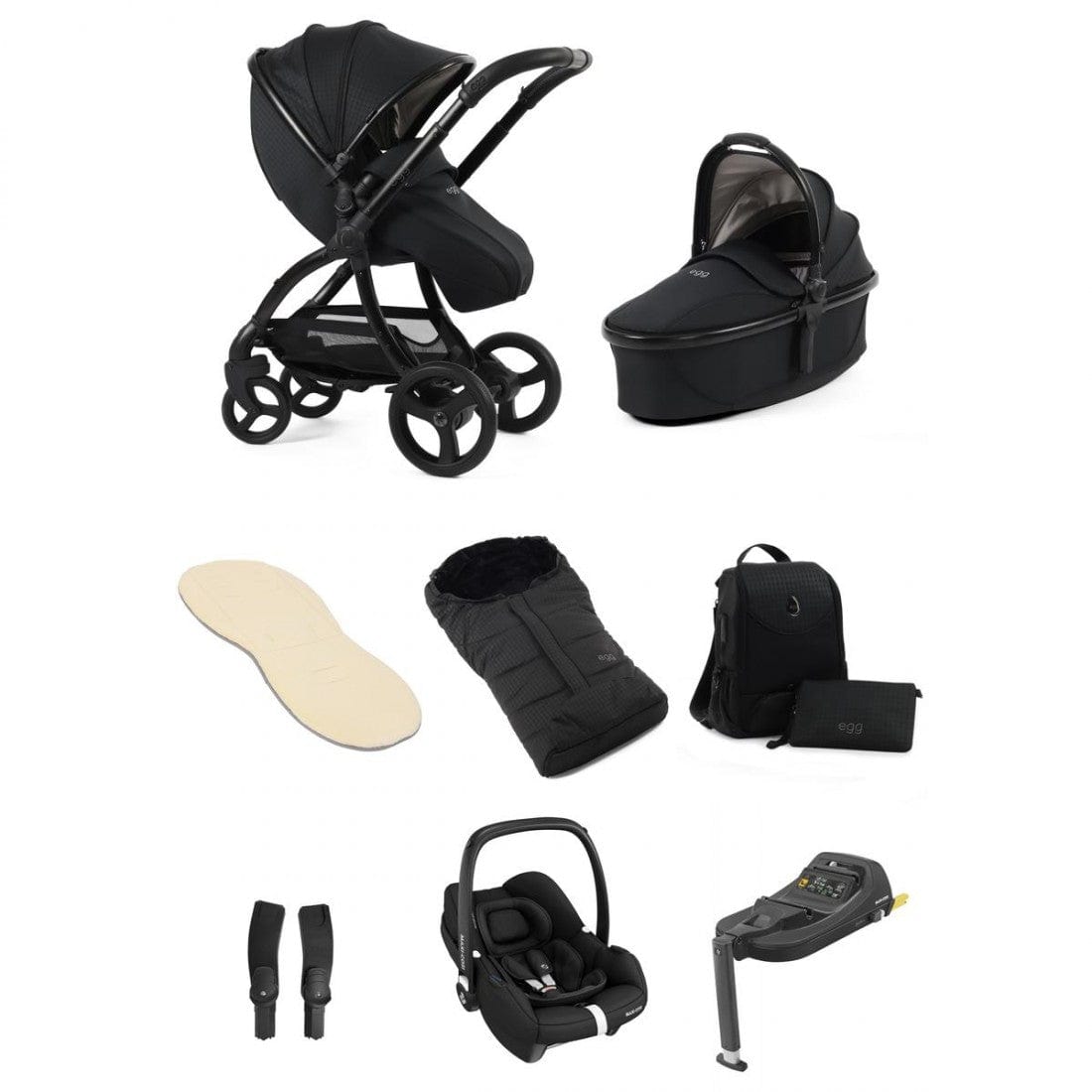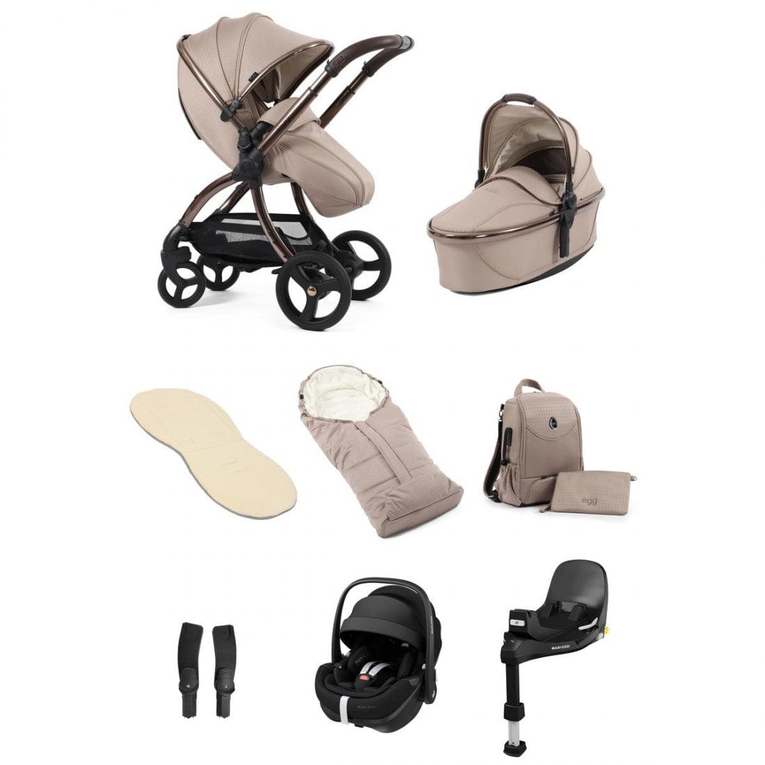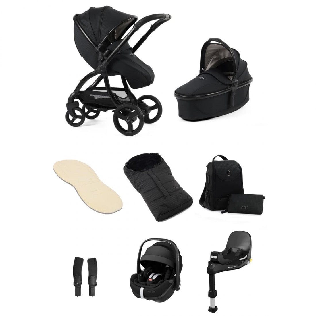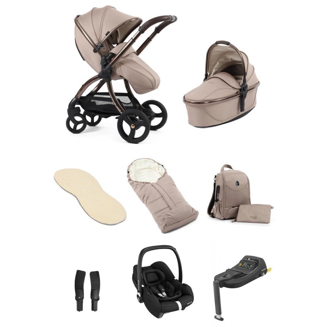 Car seats from leading brands such as Maxi Cosi, Cybex and Peg Perego are also compatible with the egg chassis when used with the multi car seat adaptors. A full list of safety-tested car seats are as follows: