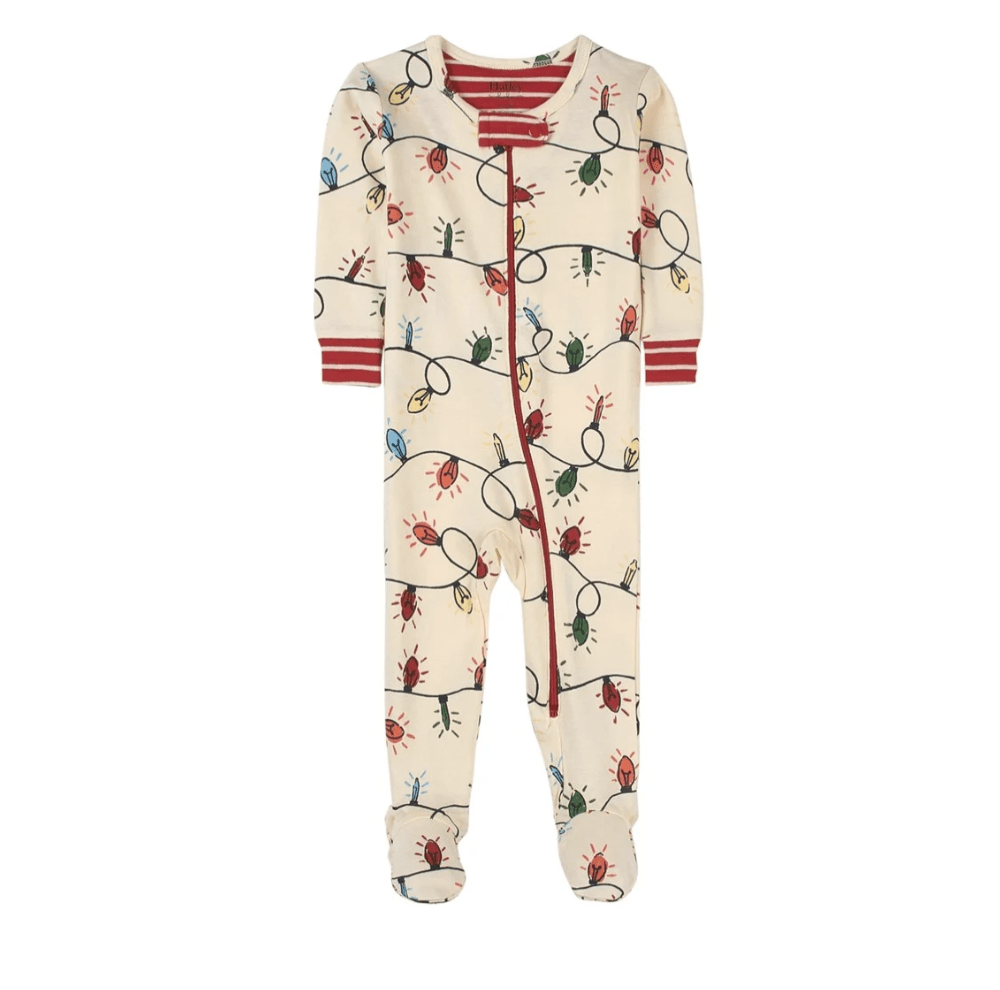 This Hatley 'glowing holiday lights' cream babygrow set has a festive Christmas tree lights print throughout the two piece, together with a stylish red and white striped trim on the cuffs. The babygrowt is made from an extremely soft cotton designed for comfort. Finished with a zip front for easy changing, making this the perfect babygrow for the festive season.