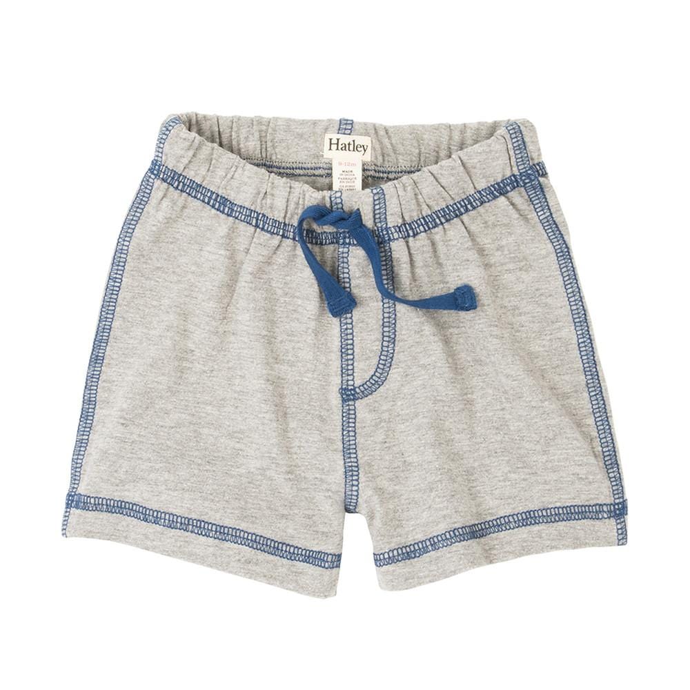These Hatley grey jogging shorts are super soft and extremely comfy, made from a lightweight material designed for your baby's comfort. Complete with a blue stitching trim and blue draw strings. Finished with an elastic waist for comfort and easy changing.