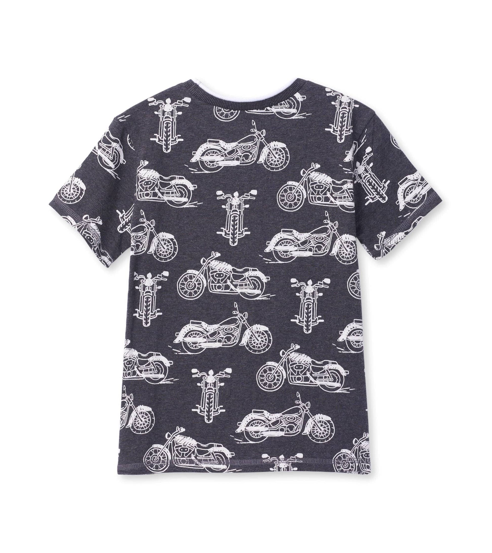This Hatley 'motorcycles' charcoal grey t-shirt has a cool off white motorbikes print throughout the garment. Made from a soft and stretchy material designed with comfort in mind, making this the perfect casual wear t-shirt for your little man.