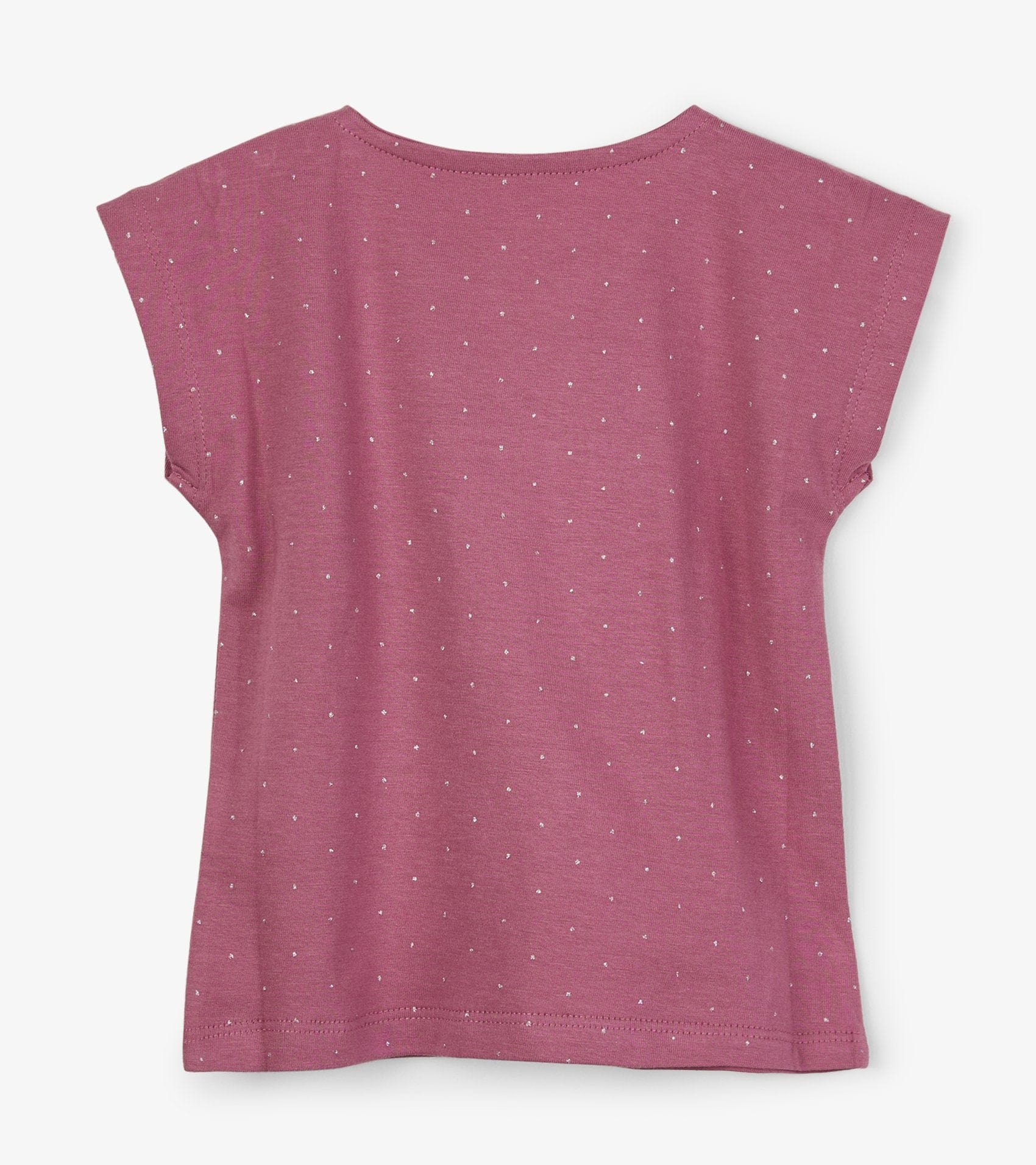 This Hatley 'pretty bunny' dusty pink t-shirt has a sparkly silver dots design throughout the garment, complete with a cute embroidered bunny rabbit on the front. Made from an extremely soft and stretchy organic cotton designed for comfort. Finished with poppers on the shoulders to fasten making changing an easy task.