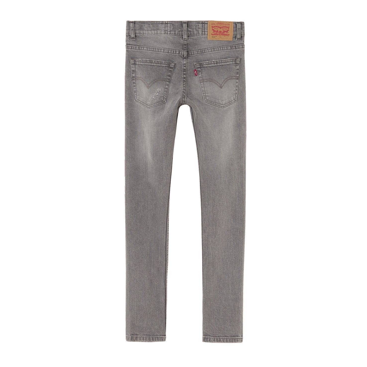 These Levi's 519 grey skinny jeans have a stylish distressed design on the front of the garment, complete with two easy access pockets on the front and back. Made from a soft and stretchy material designed for comfort with the traditional leather Levi's logo on the back and red logo sewn onto the back pocket. Finished with a popper with a zip below to fasten on the front and an adjustable waist for easy changing.