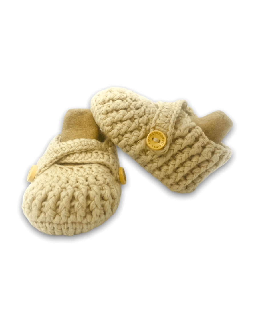 These Louie Boutique knit booties are made from an extremely soft material designed for your baby's comfort, complete with cute decoration button. Comes in a beautiful wooden gift box making this the perfect newborn gift.
