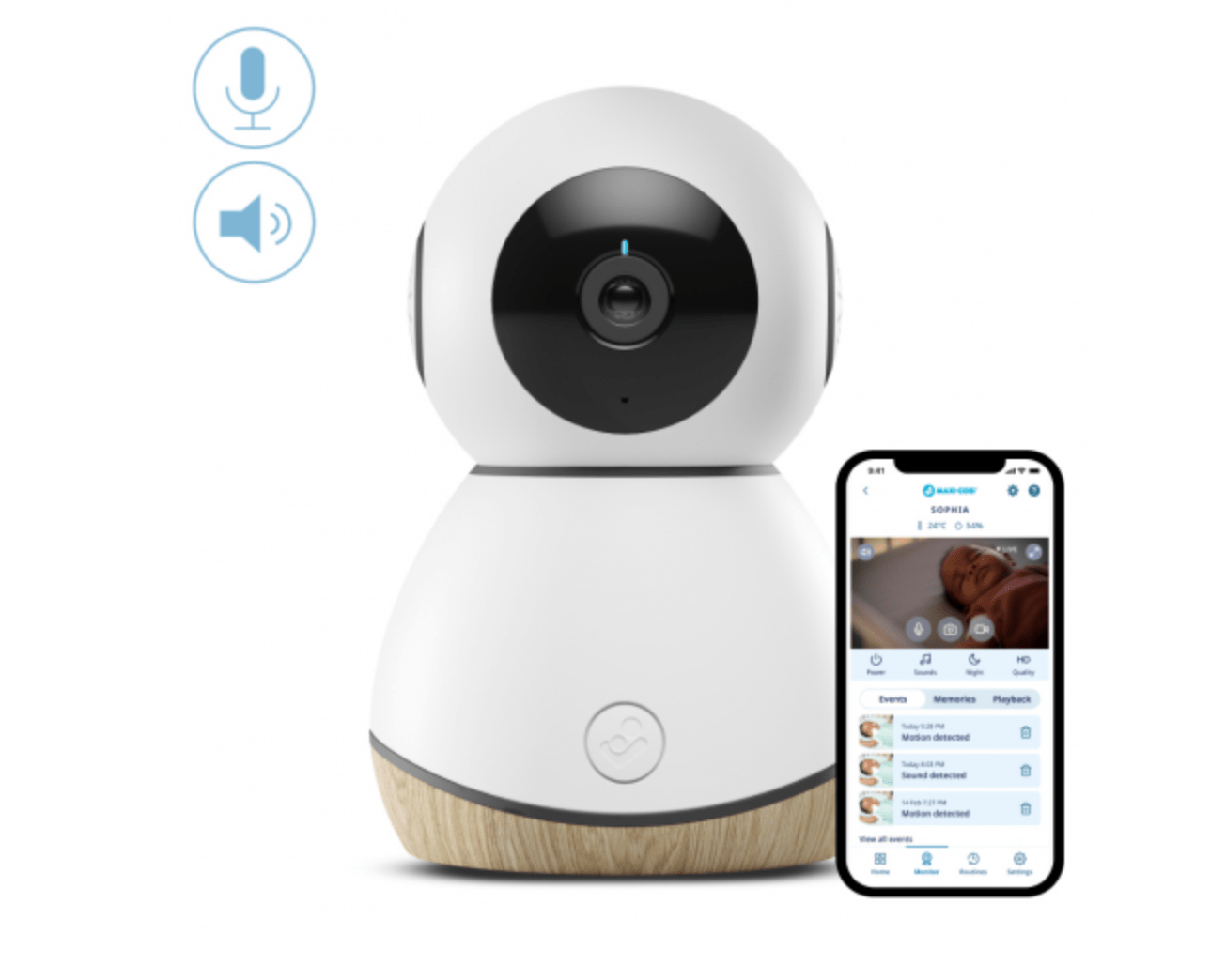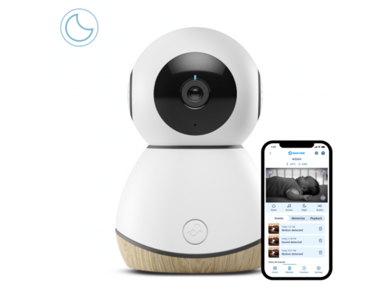 With See Baby Monitor connected to your phone, you’ll have peace of mind that your baby’s always safe & sleeping comfortably. Keep a close eye on your little one at any time, with day & night vision and never miss a moment or a smile with HD live streaming, remote-controlled pan, tilt & zoom. Safe & secure, streaming data is fully encrypted so your family moments remain private. You can relax knowing you’ll be notified of any movement, sound, temperature or humidity changes via the app.