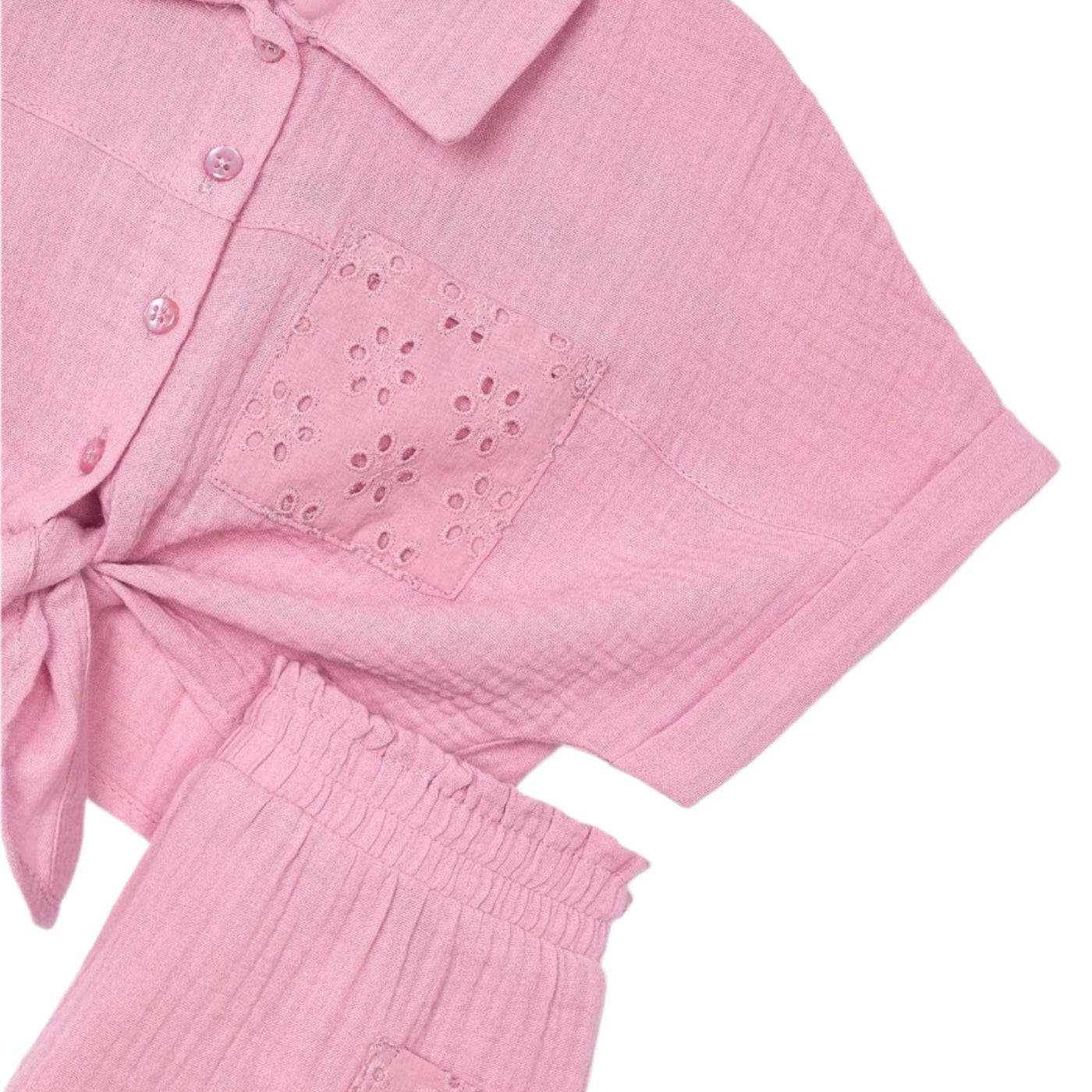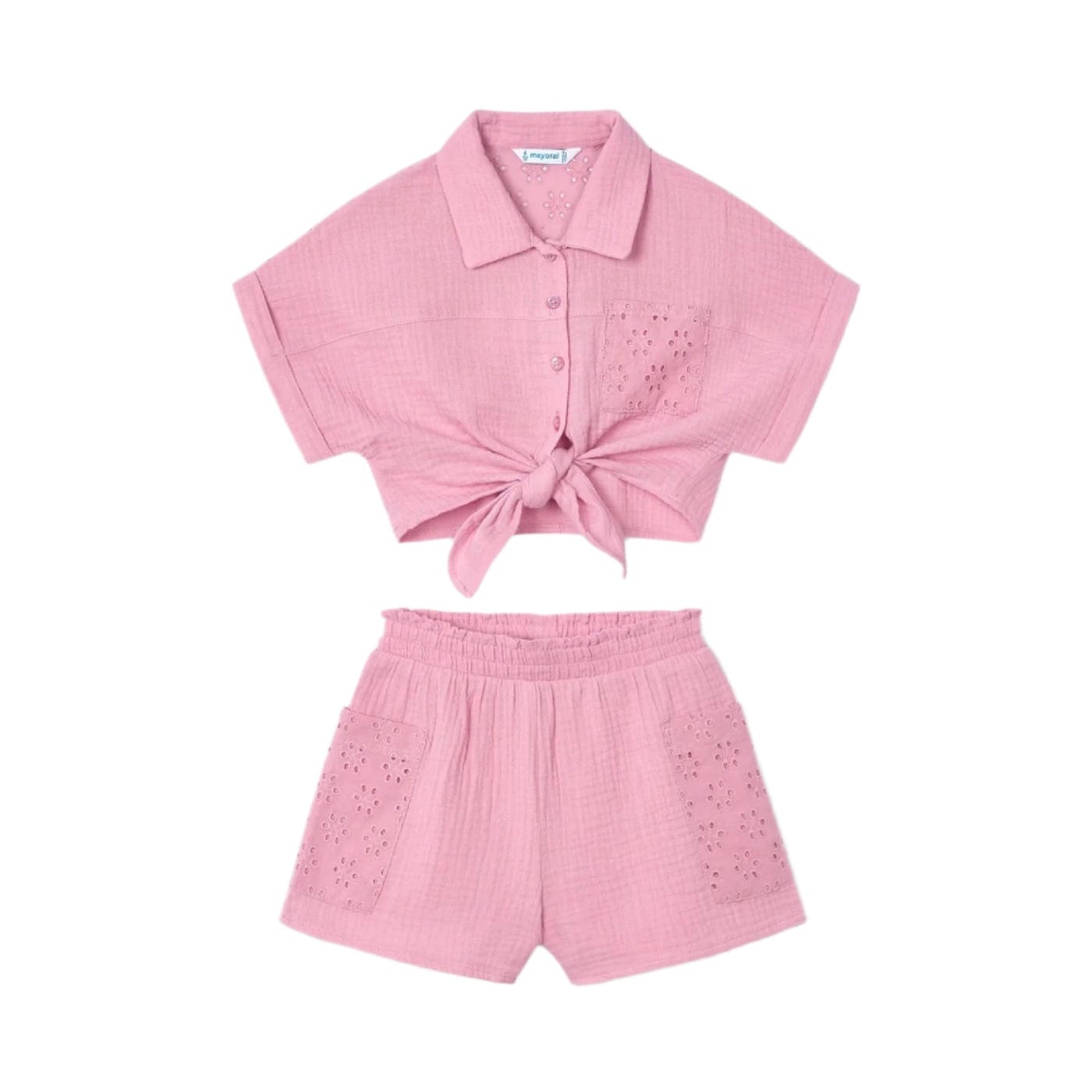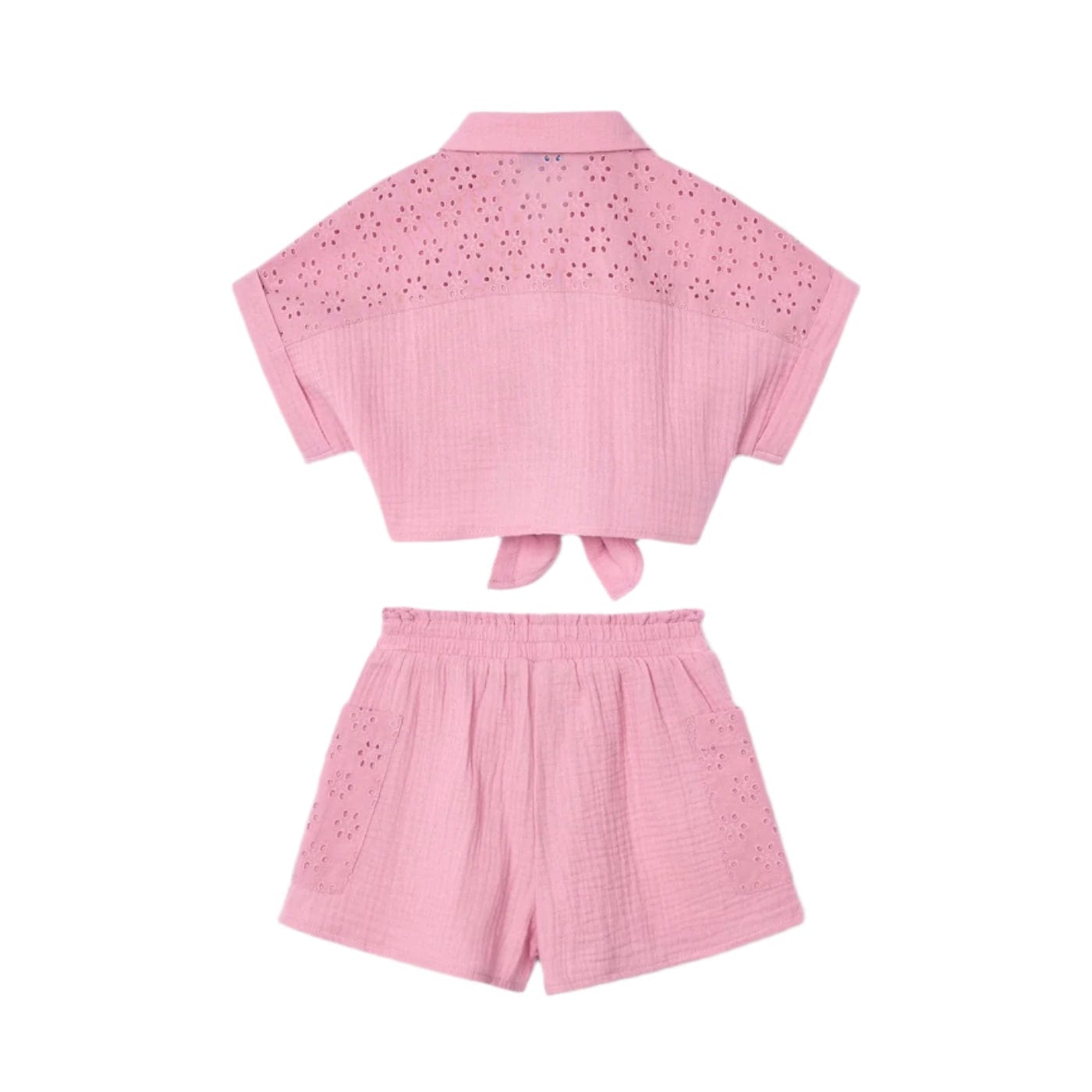 Mayoral Dusty Pink Broderie Anglaise Two Piece Shorts Set