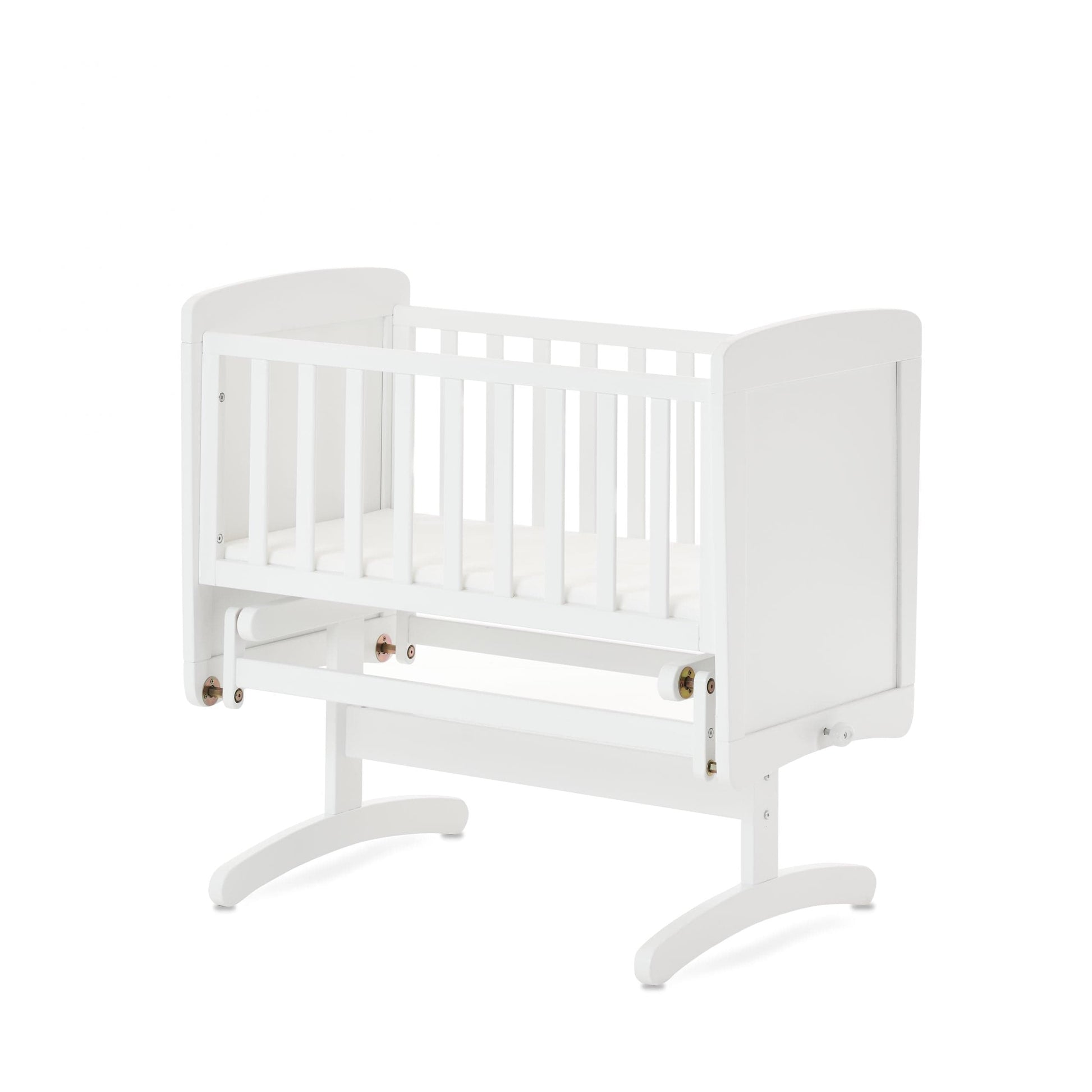 This charming gliding crib provides parents with the perfect environment for babies to sleep soundly from birth up to six months. This beautiful piece in neutral white tone, meaning it coordinates perfectly with in all rooms
