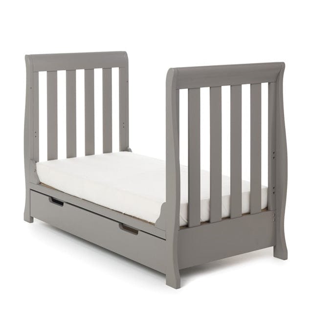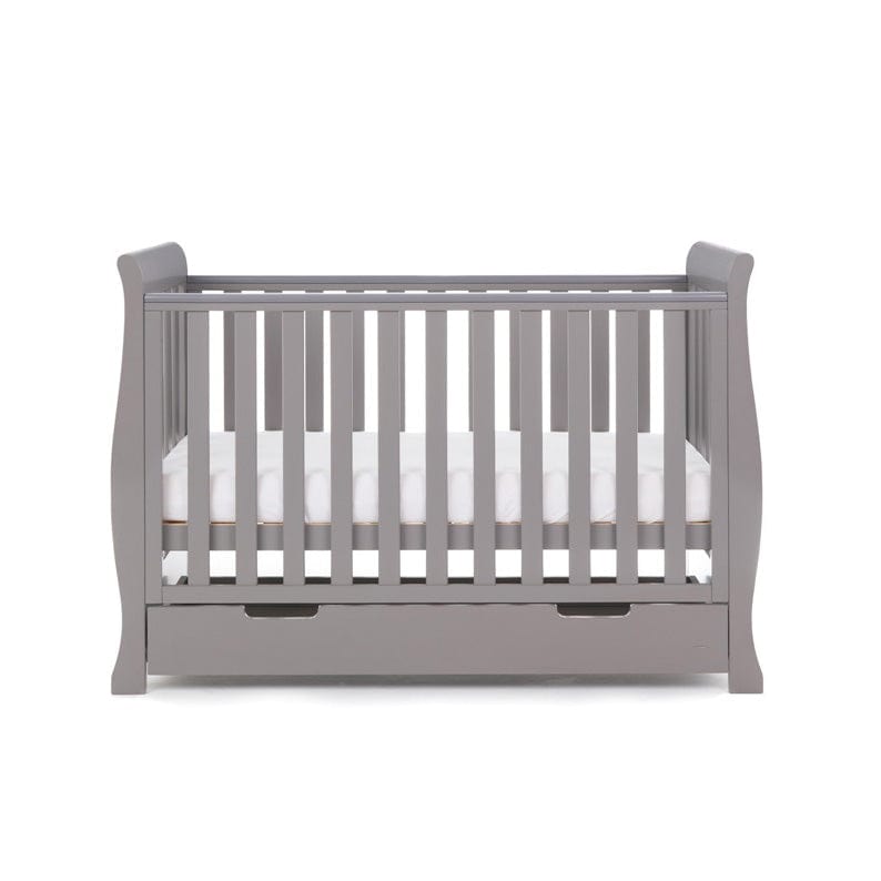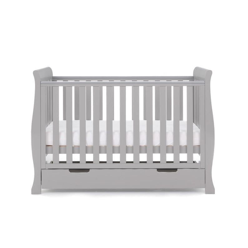 The Obaby Stamford furniture range offers families the perfect combination of style, quality and practicality. The Stamford Mini sleigh cot bed is the perfect addition to any nursery, its elegant sleigh design offers traditional styling while its slatted ends add a contemporary touch.