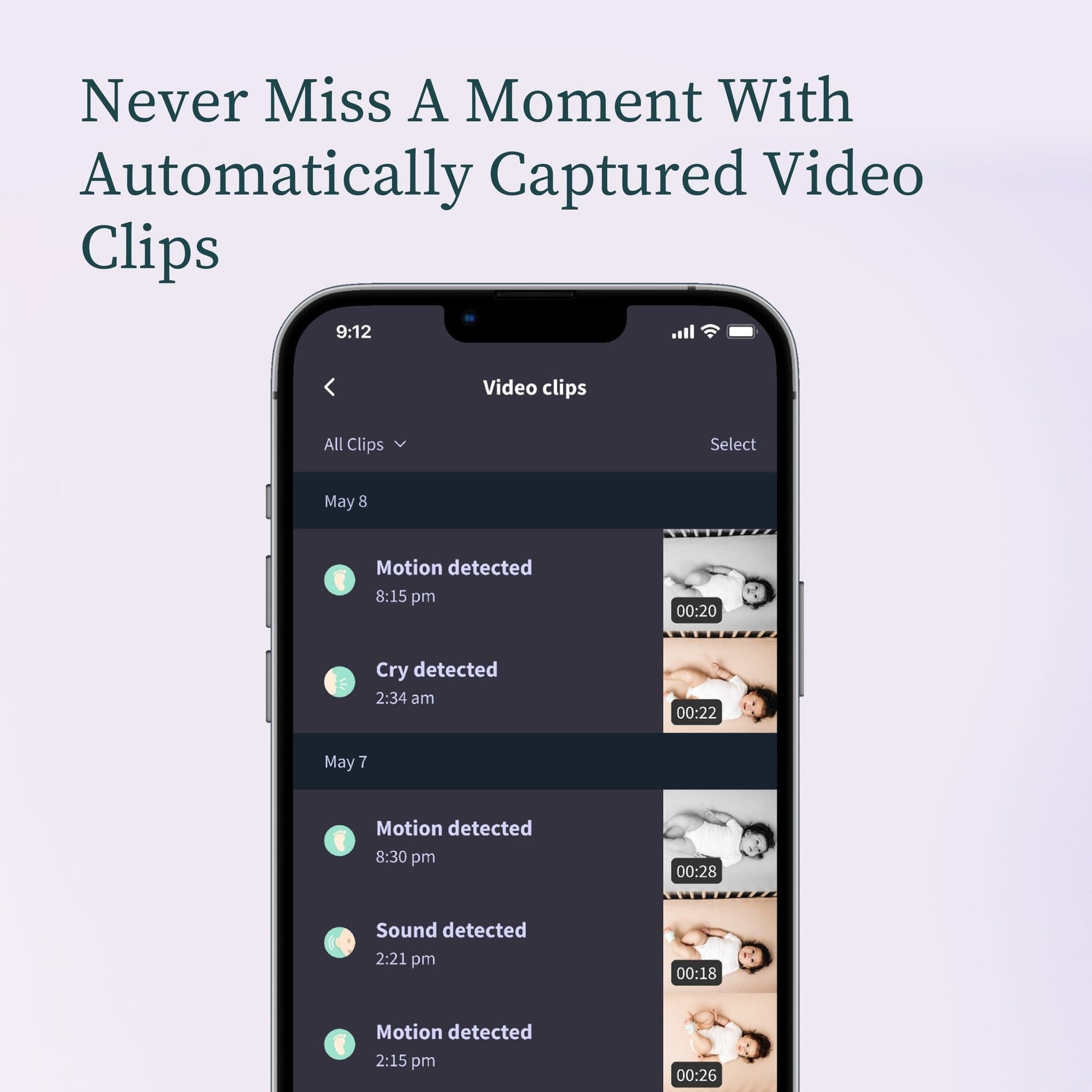 Gain additional visibility around why Baby may be upset: the Owlet Cam 2 features video clips when sound, motion, or crying notifications are detected in Baby's room.