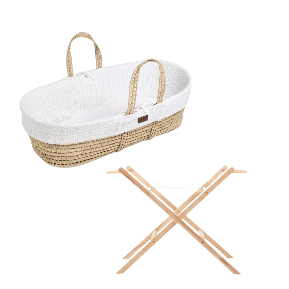 - Includes : Natural Knitted Moses Basket, Little Green Sheep Mattress, Moses Basket Stand