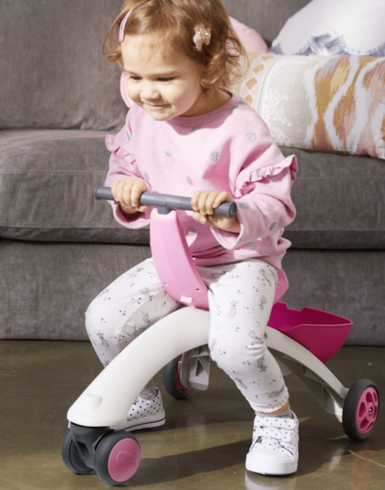 An innovative walk behind and ride-on in one product that lets you switch between options with one easy click! With a sleek design, fun toys and state-of the-art safety features, the 5-in-1 Here I Grow grows with your baby, rolling along with your little one on the path of development. The 5-in-1 Here I Grow: Walk Behind & Ride-On is an inventive and stylish product that grows with your little one from 6 months to 3 years. With a no less than 5 modes of use and a fun electronic panel with a selection of activities, the Tiny Rider offers babies hours of fun and parents some peace of mind.