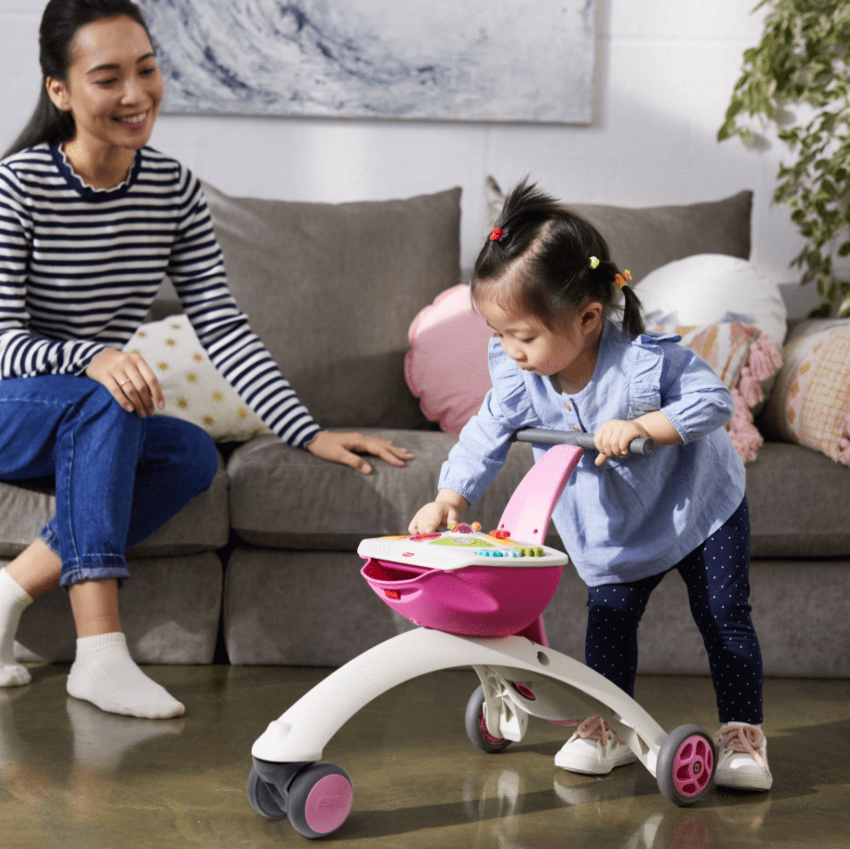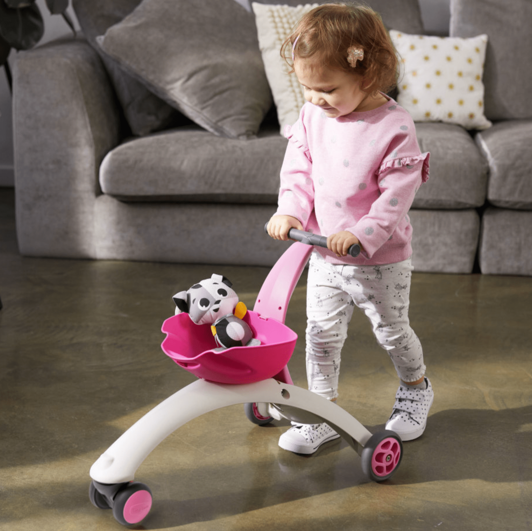 Tiny Love's 5-in-1 Here I Grow inventively transforms itself to match your baby’s development, while promising the highest level of safety through its innovatively designed safety brake mechanism, which gives you some extra security when your baby is taking his first steps and exploring the wonder of walking. A single click lets you switch from walk behind to ride-on, making it super easy to shift between modes.