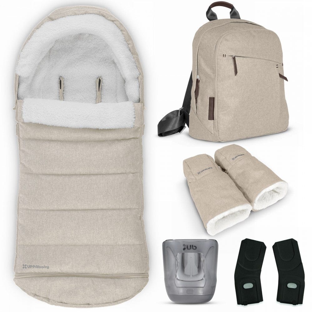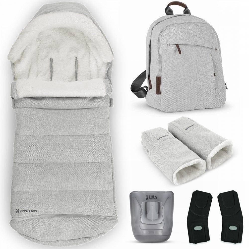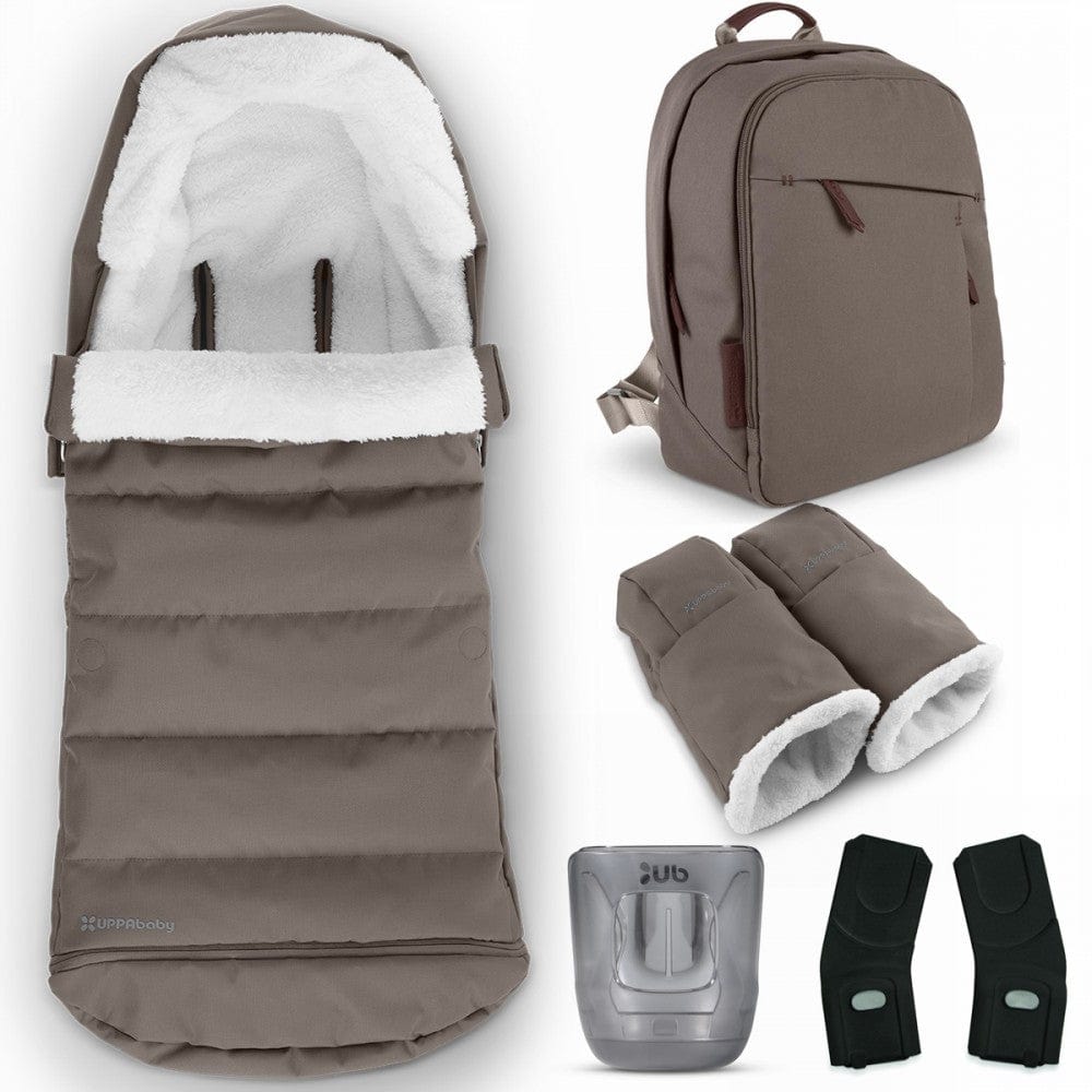 The UPPAbaby 5 Piece Accessory Pack is perfect for all your outings with your baby, this set helps make sure you have everything you need when you are out and about with your little one. The accessory pack contains all the little extras that'll come in handy when you're out and about: a Cosy Ganoosh for keeping them warm in chilly weather; a Changing Backpack, perfect for carrying all of their changing essentials; a Cup Holder to keep their snacks secure; and Cosy Mitts to protect your hands when pushing the stroller on cold days. Everything has been designed to perfectly coordinate with your Uppababy stroller.