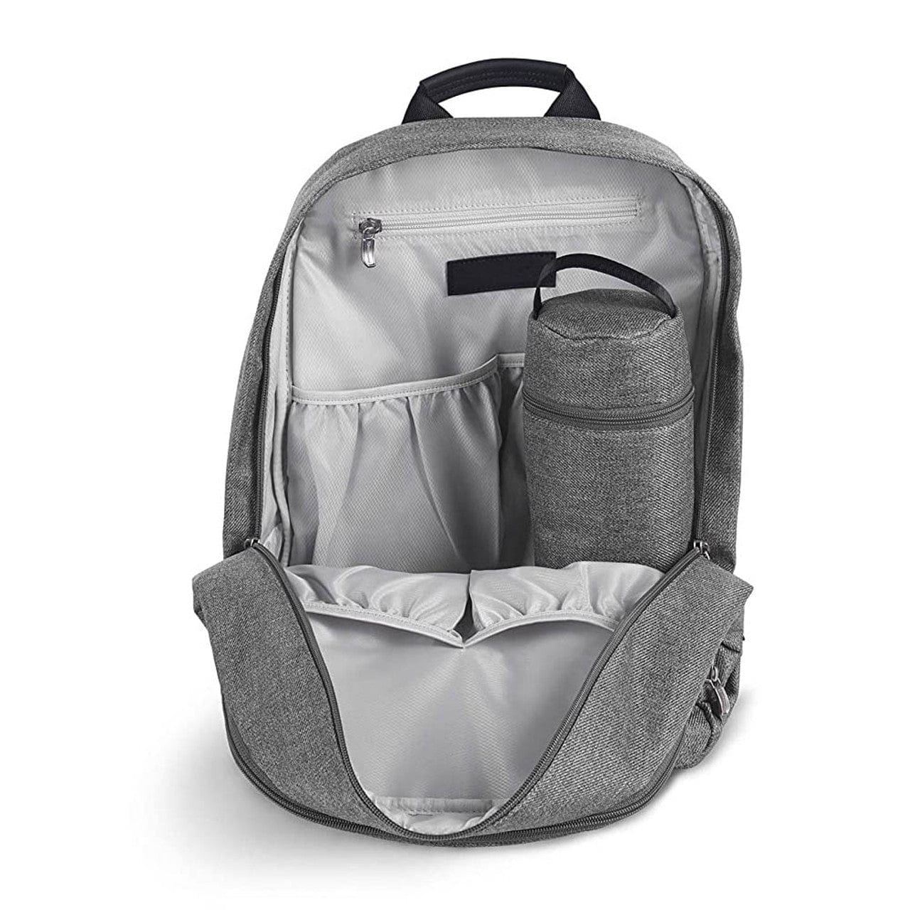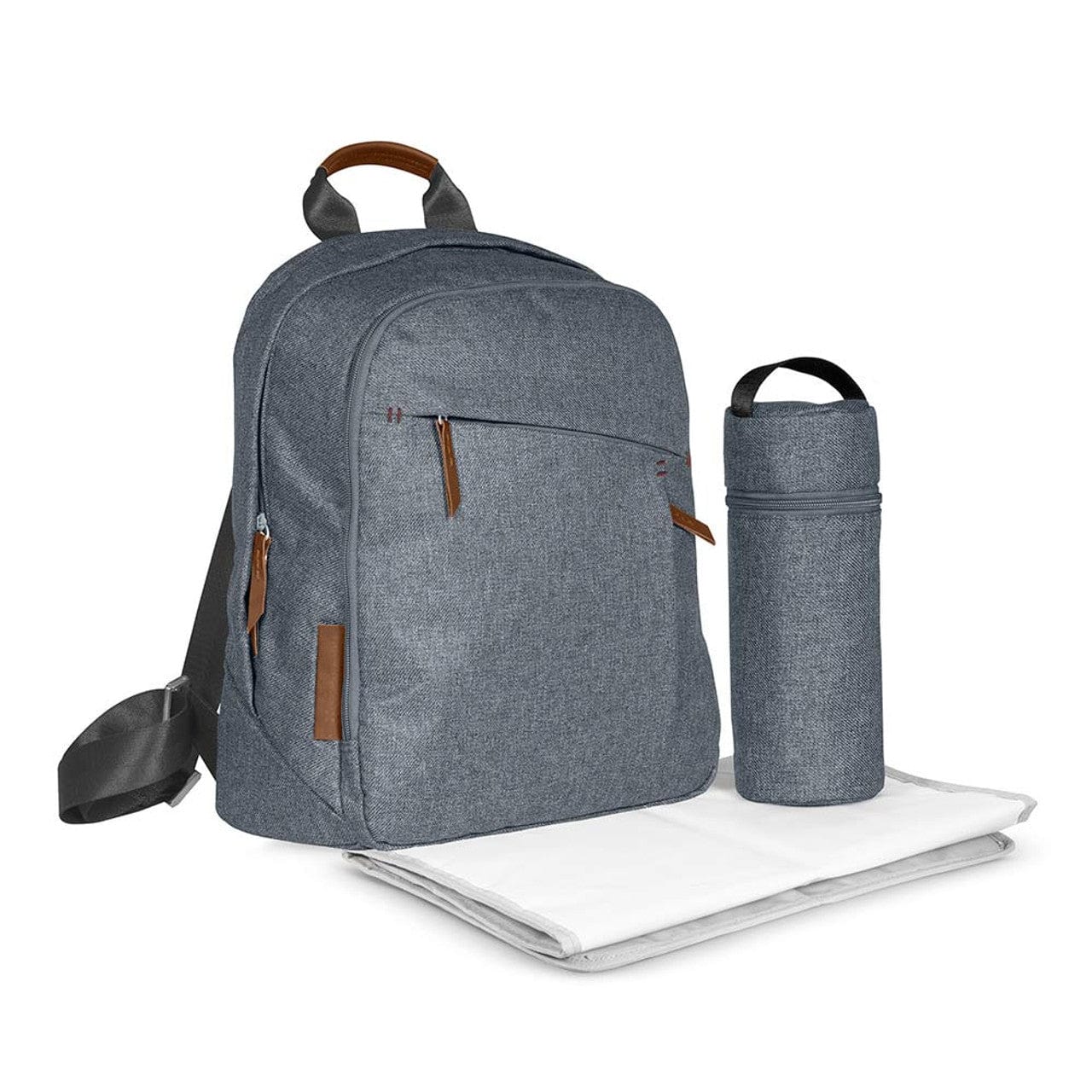 On your back or on the stroller, store all your on-the-go needs in our chic Changing Backpack. Its premium fabrics and leather detailing coordinate beautifully to your UPPAbaby stroller, while adjustable straps and multiple storage compartments help you gear up and head out in style.