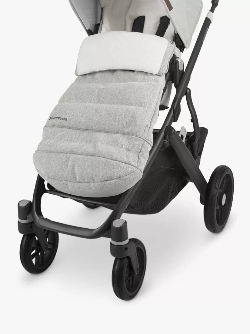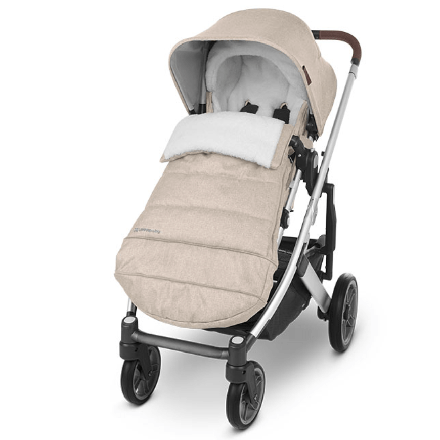 The ultra-plush CozyGanoosh footmuff provides ultimate coverage to keep your child toasty warm in inclement weather.